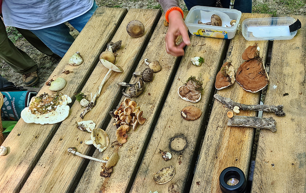 Sur place, Pédro a directement identifié 55 espèces (la liste au format PDF). Certains taxons ont été emportés pour une étude plus approfondie, Les conditions n’étaient pas idéales pour les comestibles : très peu ont été ramassés dans cette première partie de la sortie.