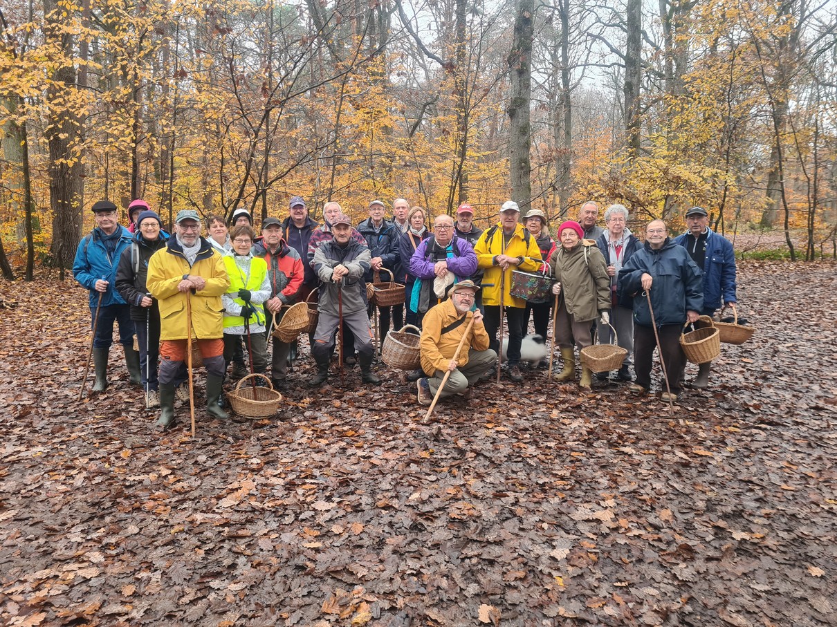 L’après-midi, le groupe s’est dirigé vers la forêt de Senlisse. Cette seconde étape a été plus fructueuse pour les amateurs de champignons comestibles : chanterelles en tube et trompettes de la mort ont été trouvées par plusieurs participants, apportant une belle touche gourmande à la journée.